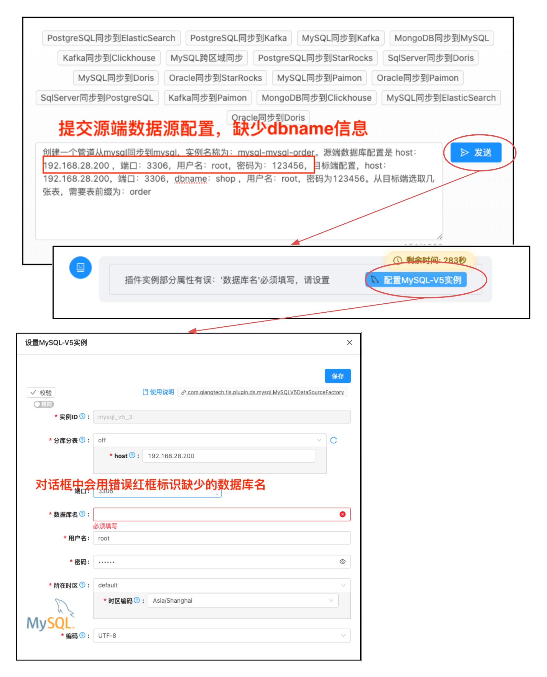 - 人工补全: 如缺少必填参数(如数据库密码),弹出配置对话框请用户填写