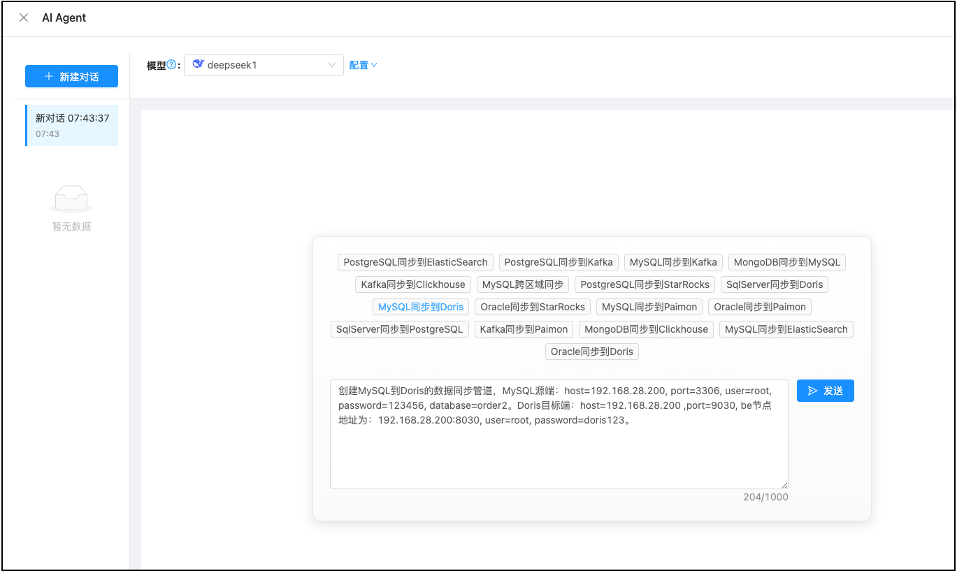 下图是TIS Pipeline AI Agent 聊天界面总览: