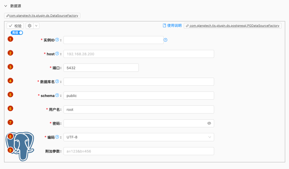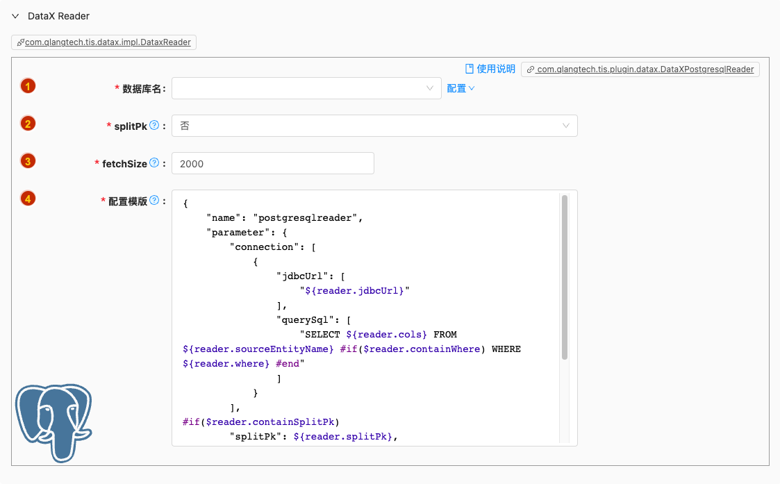 - 默认值: com.qlangtech.tis.plugin.datax.DataXPostgresqlReader.getDftTemplate()